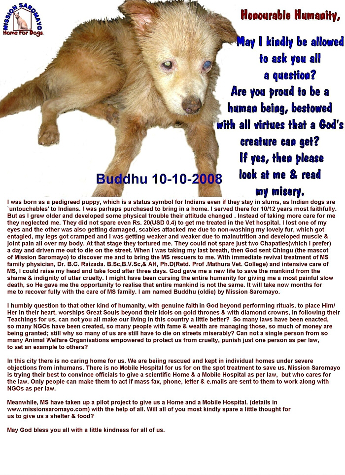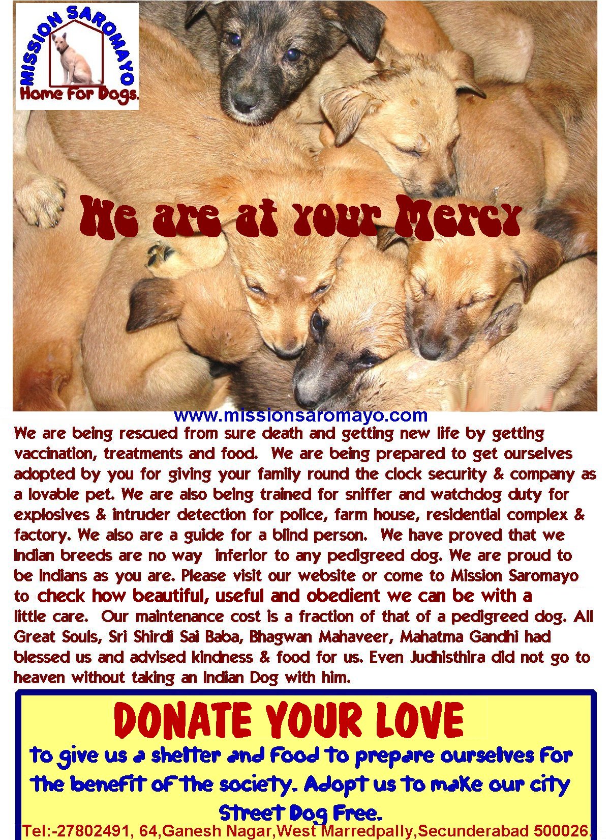 Please spread our message by displaying this poster at all places where you feel people can see it. This will help us in our adoption programme as well as for donating towards our Dog & Puppy Home construction. A contribution of Rs. 20.00 is requested to get a print of the poster.